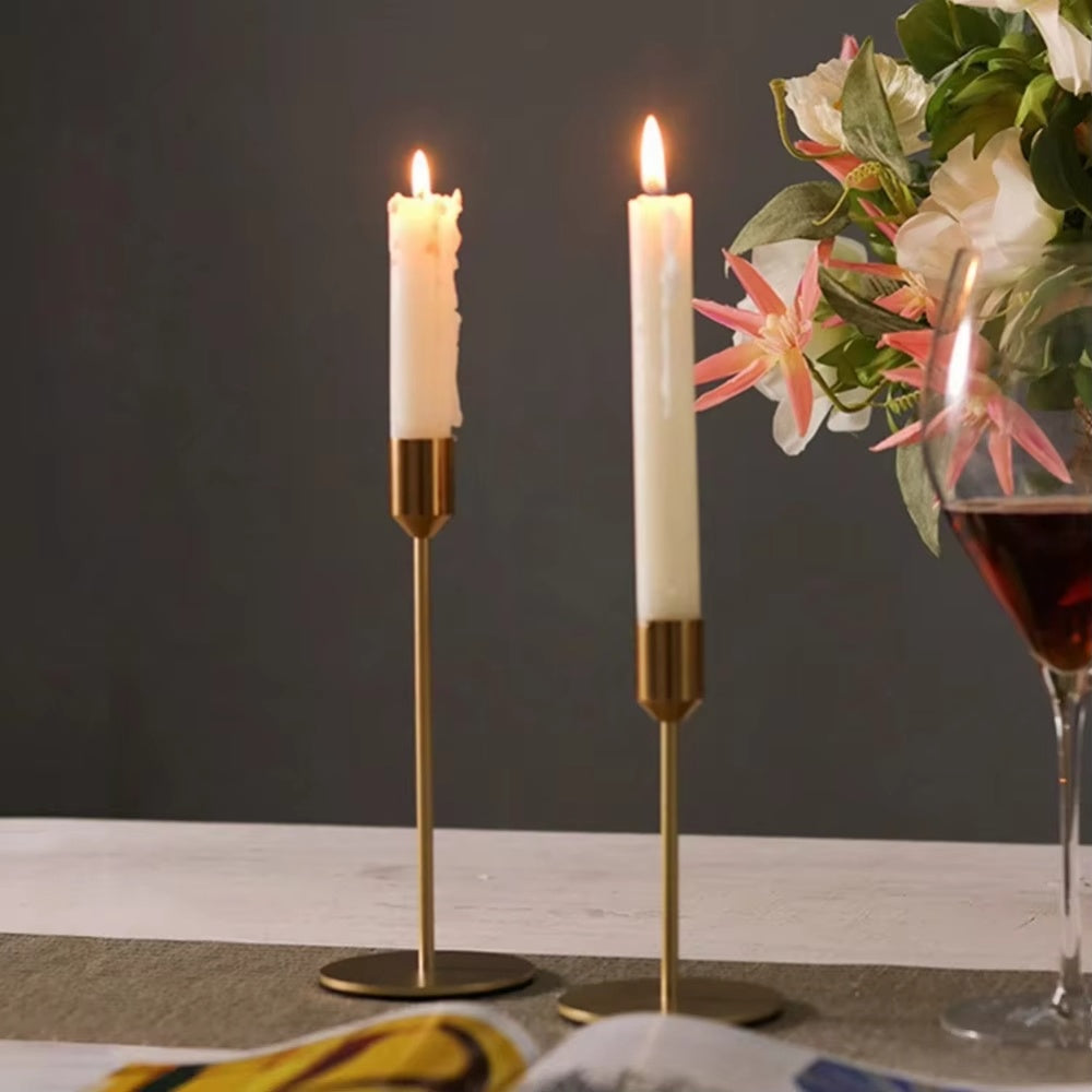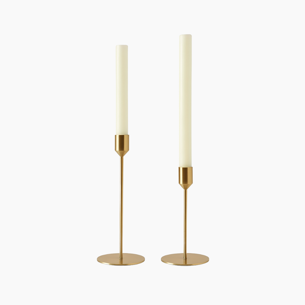 LUVEA-ljusstakarna i guld är ett stilrent 2-pack med minimalistisk design, skapade för att ge din dukning eller inredning ett sofistikerat lyft. De smala siluetterna i metall ger ett exklusivt uttryck utan att ta över – perfekt för vardagslyx, bröllop, middagar eller festliga tillfällen.